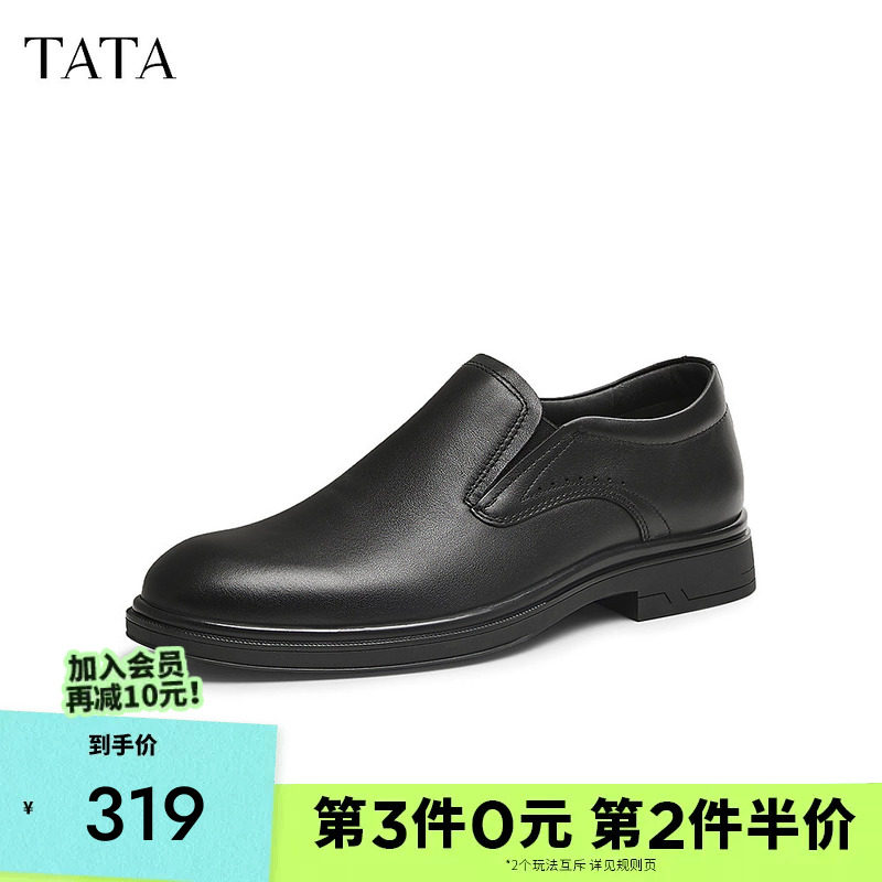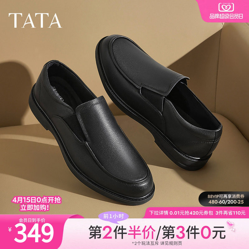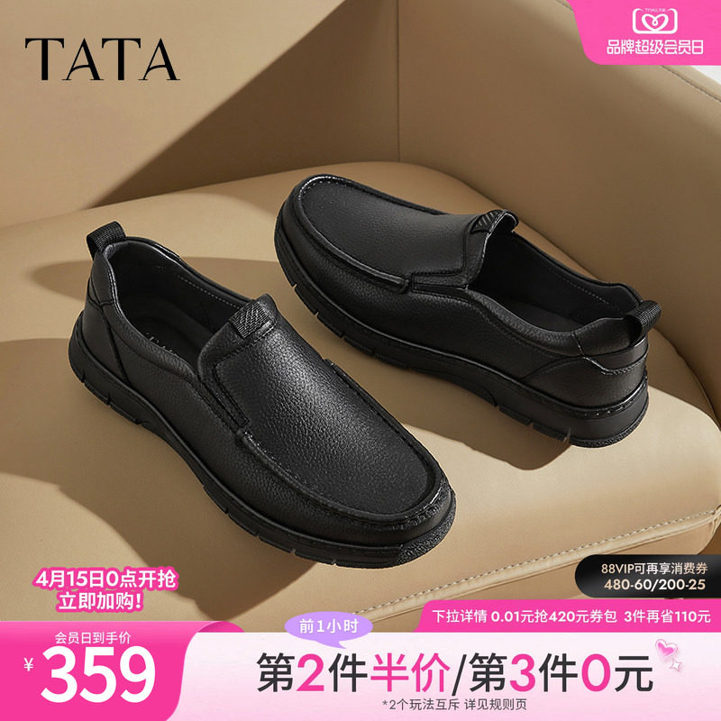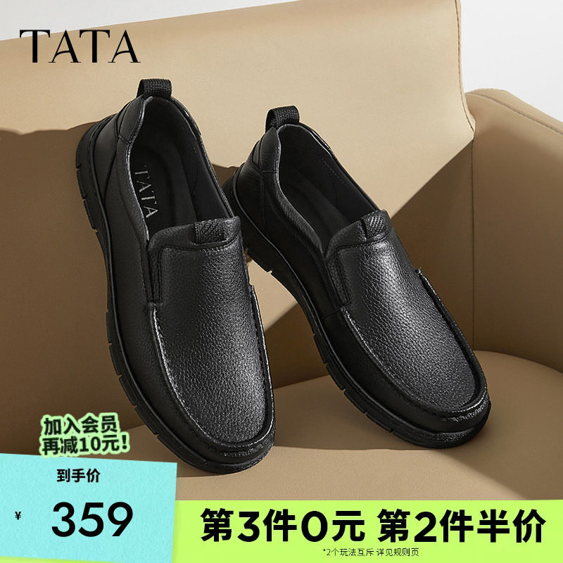 TATA他她商务休闲皮鞋男士真皮一脚蹬父亲鞋2025春季新款72W24AM5