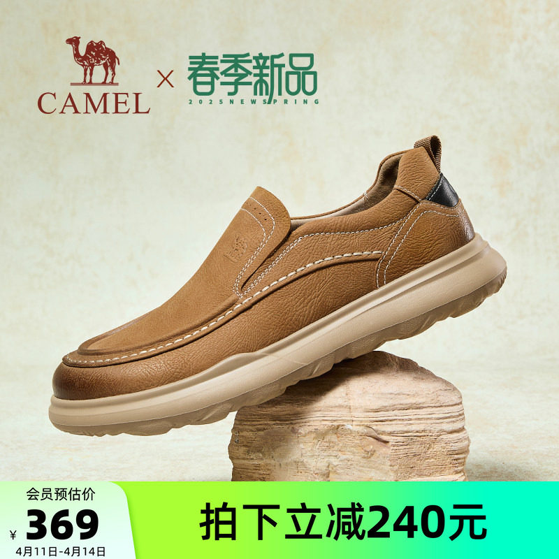 骆驼男鞋2026春季新款透气乐福鞋耐磨真皮父亲鞋子一脚蹬休闲皮鞋