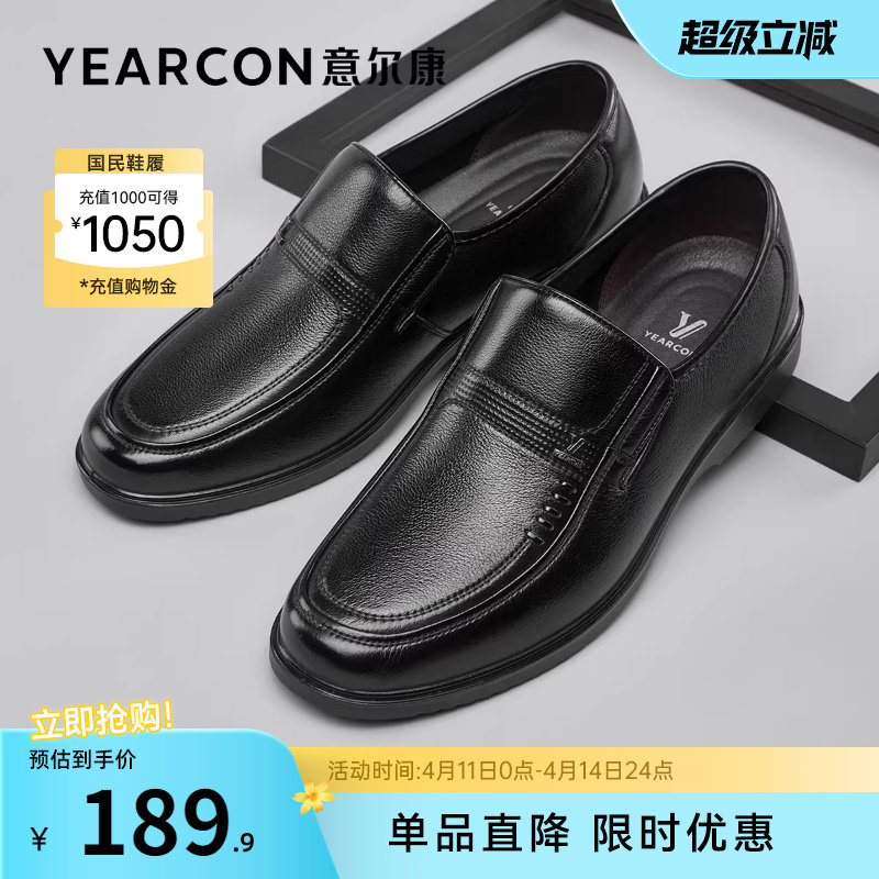 意尔康男鞋真皮休闲皮鞋男士父亲中老年爸爸鞋男款大码软底一脚蹬