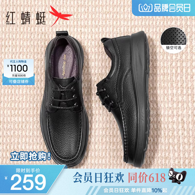 红蜻蜓男鞋春秋新款商务系带休闲皮鞋男士真皮中老年父亲爸爸鞋男