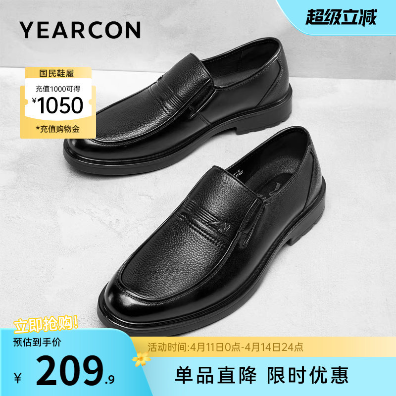意尔康男鞋真皮商务休闲皮鞋男士一脚蹬软底男款中老年爸爸鞋父亲