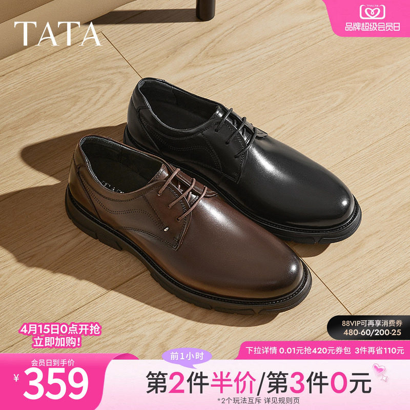 TATA他她商务正装皮鞋男士真皮结婚新郎鞋父亲鞋春新NFU01AM5奥莱