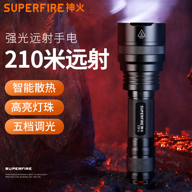 神火旗舰店C8强光手电筒充电式超亮远射灯家用户外小型便携多功能