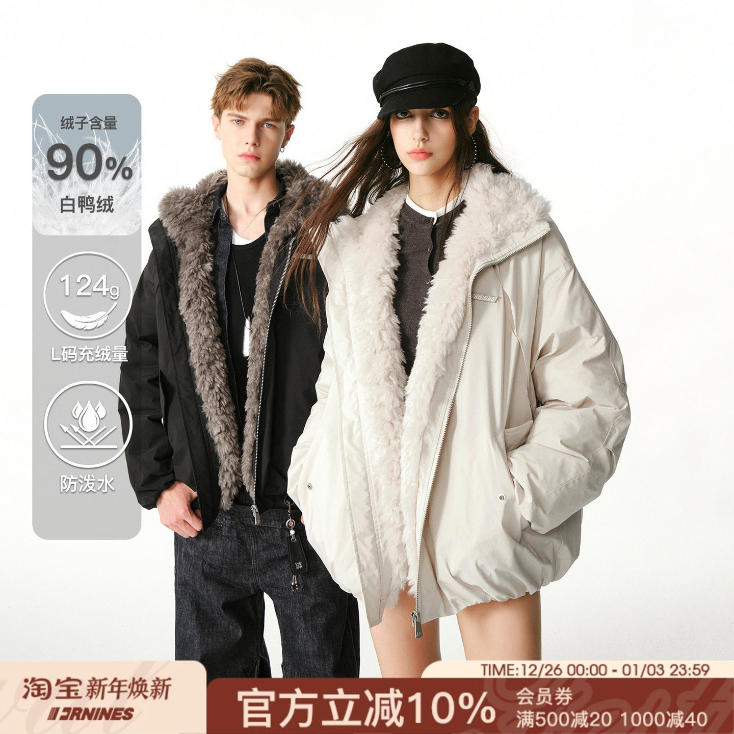 3MER哦哦三妹90白鸭绒大毛领连帽羽绒服女冬季新款情侣保暖派克服