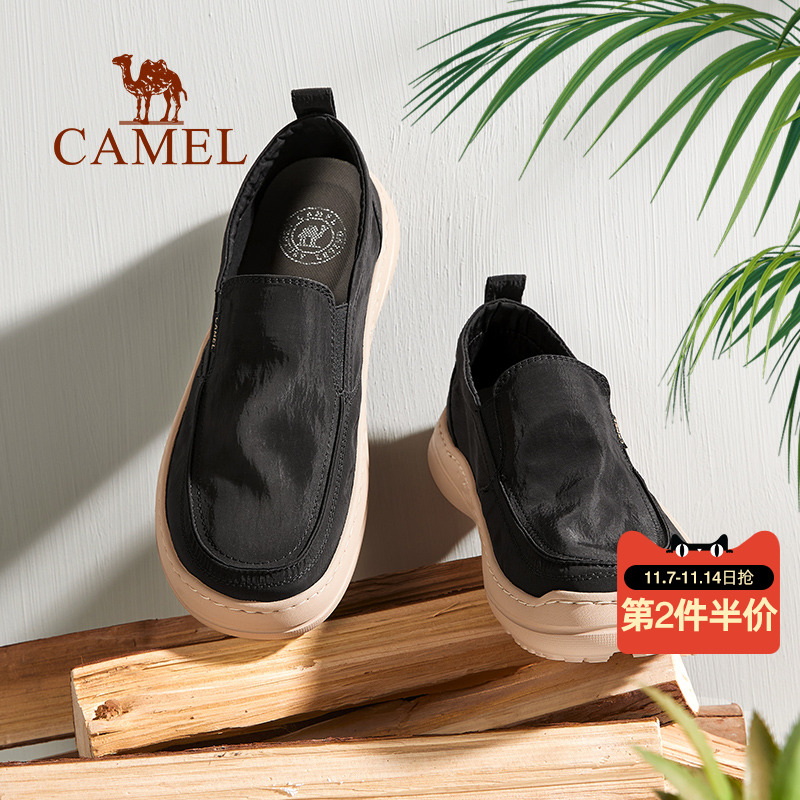 骆驼男鞋2025夏季一脚蹬舒适帆布鞋男士透气休闲爸爸鞋耐磨防滑