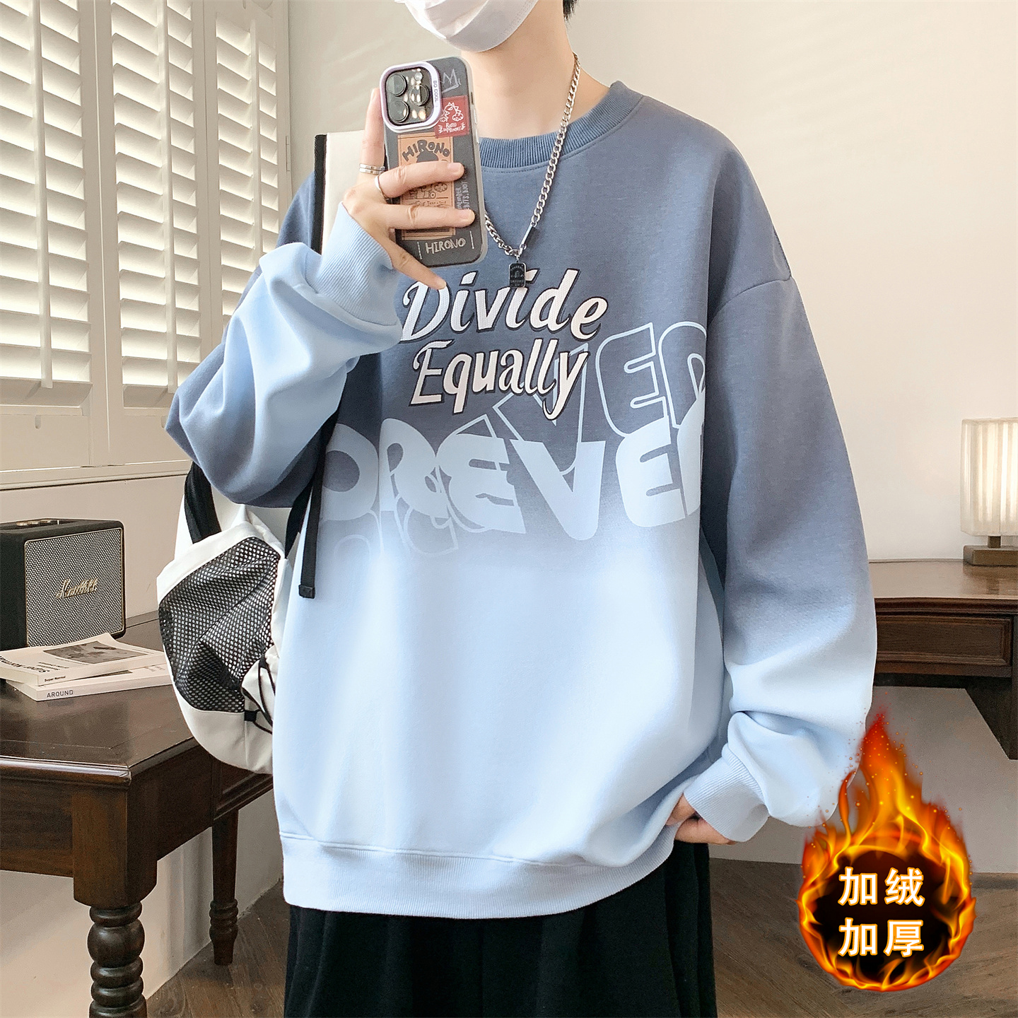 圆领卫衣男生春秋冬季新款学生青少年加绒长袖t恤男装大童潮上衣