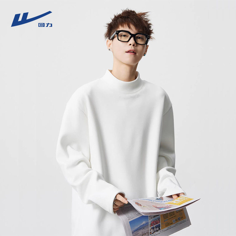回力白色打底衫男冬季加绒加厚青少年德绒内搭保暖半高领长袖t恤Y