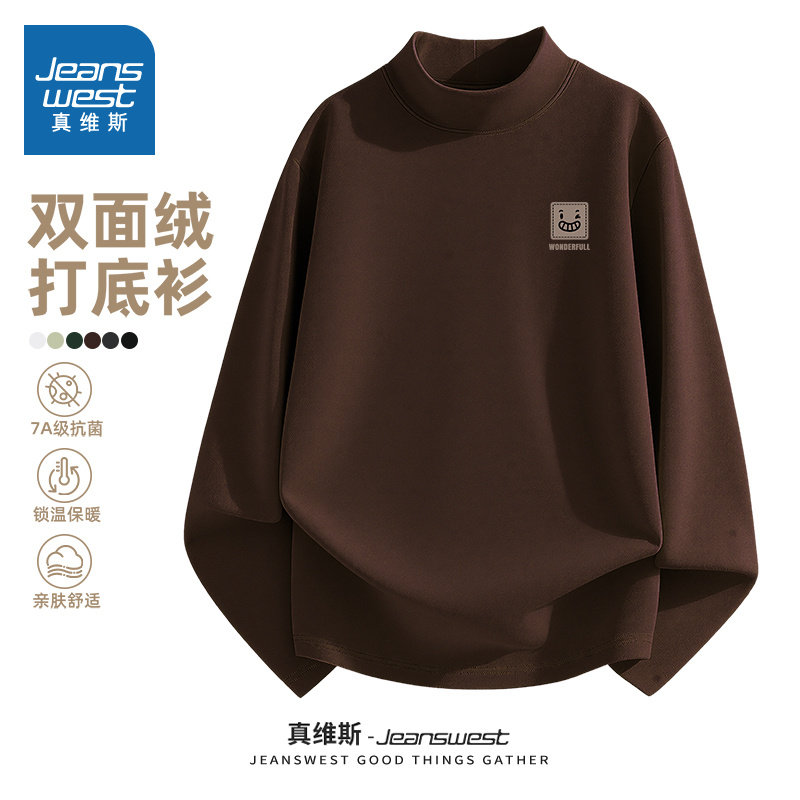 NN真维斯男士打底衫冬季双面加绒保暖高领长袖t恤青少年磨毛秋衣