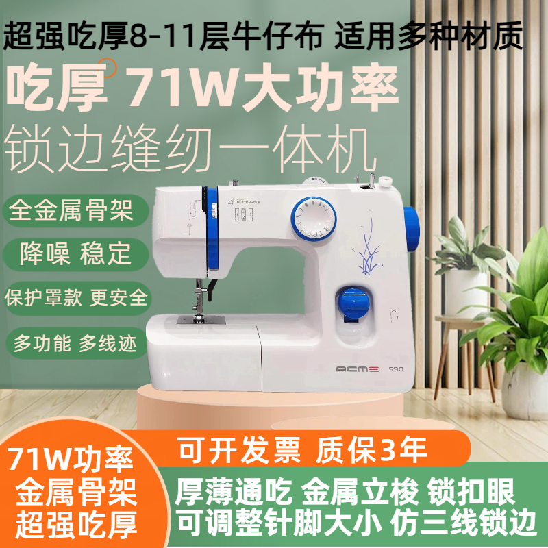 家用缝纫机小型电动全自动带锁边倒车衣505A裁缝机卷边裤脚一体机