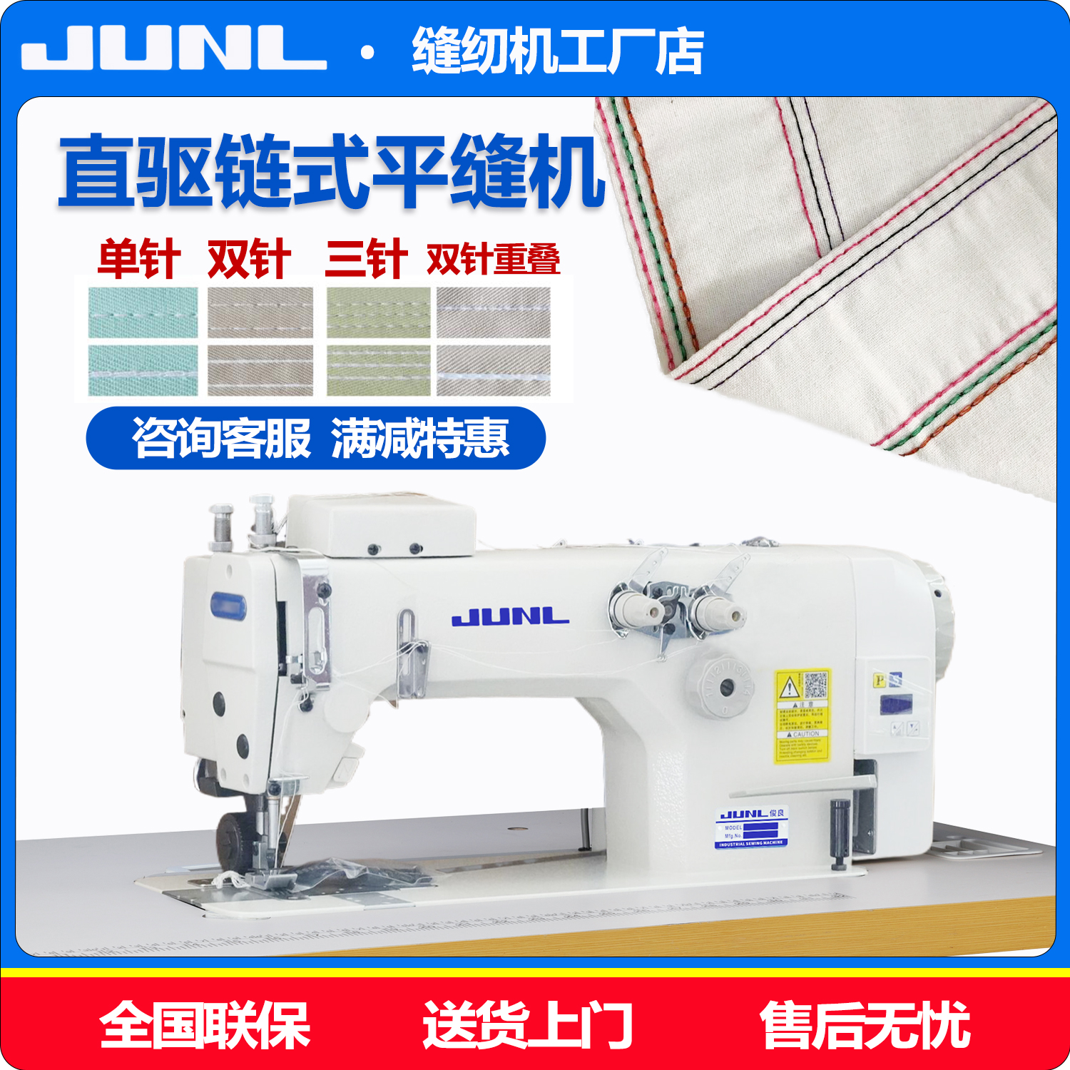 双针链式缝纫机打折车同步带拖轮直驱无底线三针链式后浪车平缝机