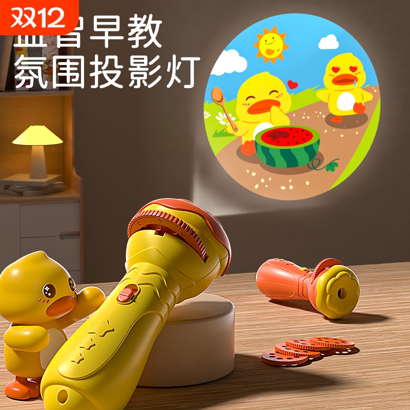 B.Duck小黄鸭幻灯片手电筒儿童玩具灯宝宝睡前星空投影仪趣味发光
