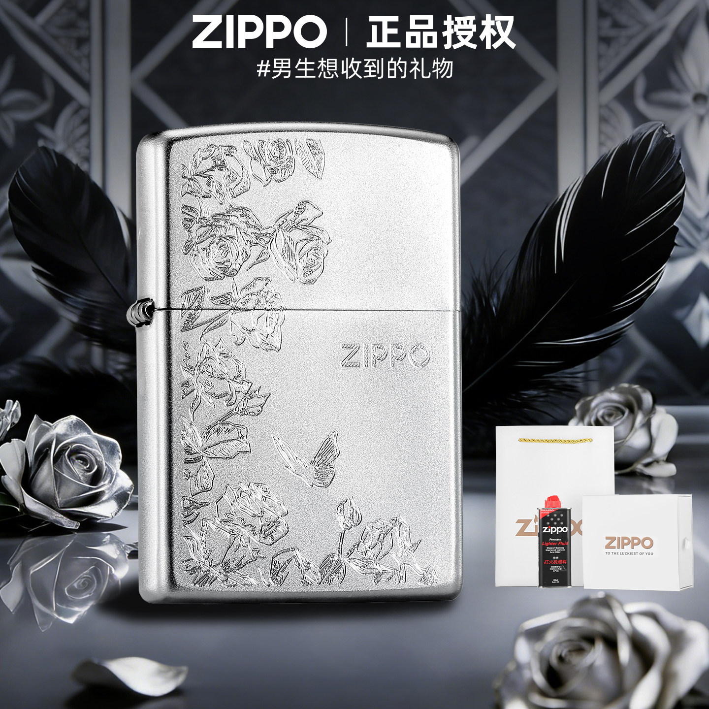 zippo正品打火机 热恋蝶语玫瑰官方旗舰店防风煤油新年送男友礼物