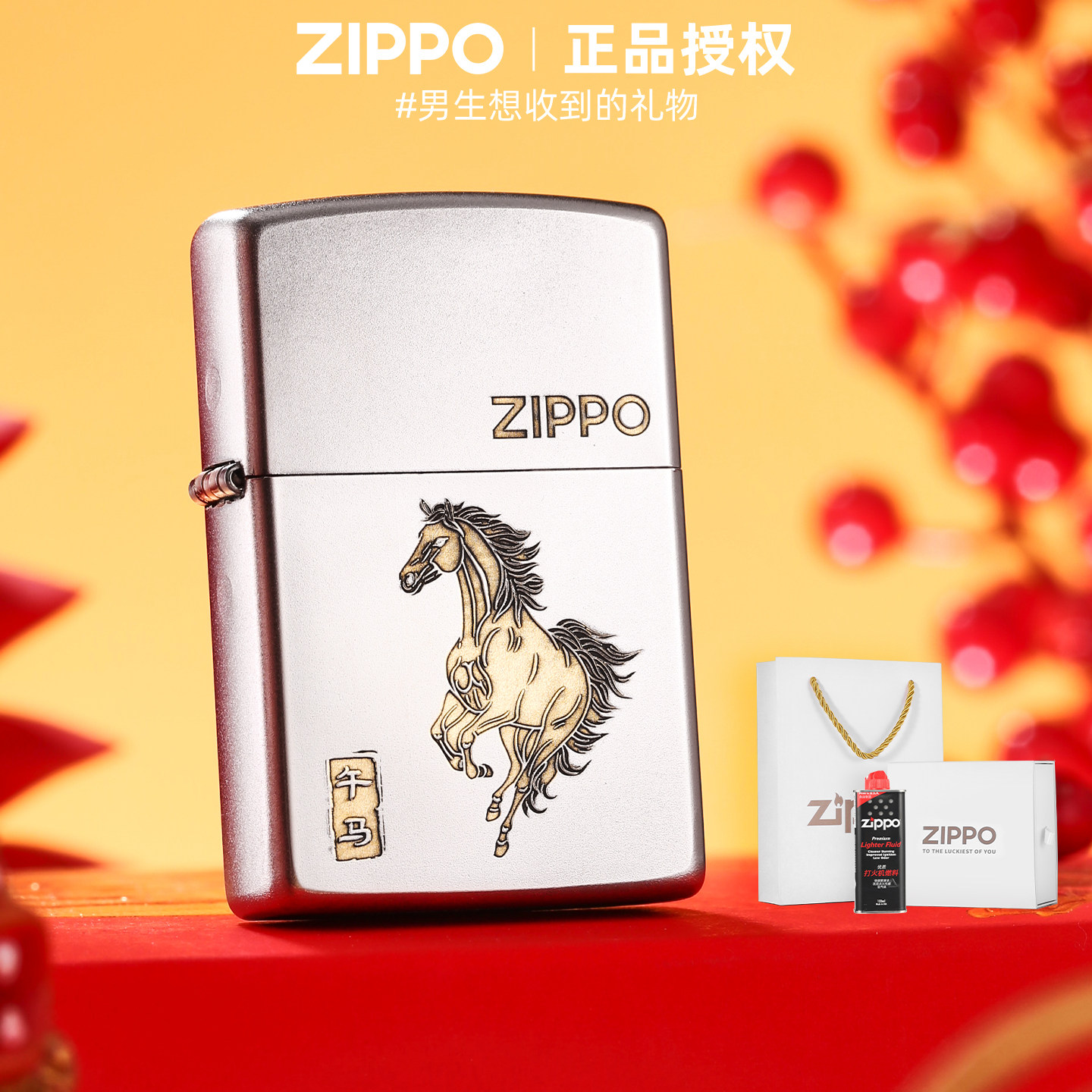 zippo打火机福运金马镜面贴章官方正品煤油防风生肖马限定送男友