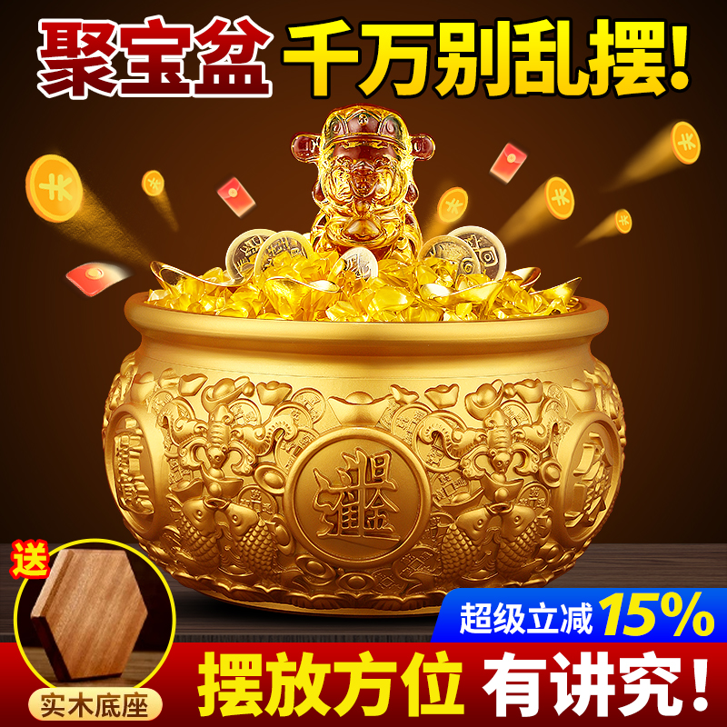 聚宝盆摆件存钱罐装饰品沙金色客厅店铺招财聚财家居实用开业礼品