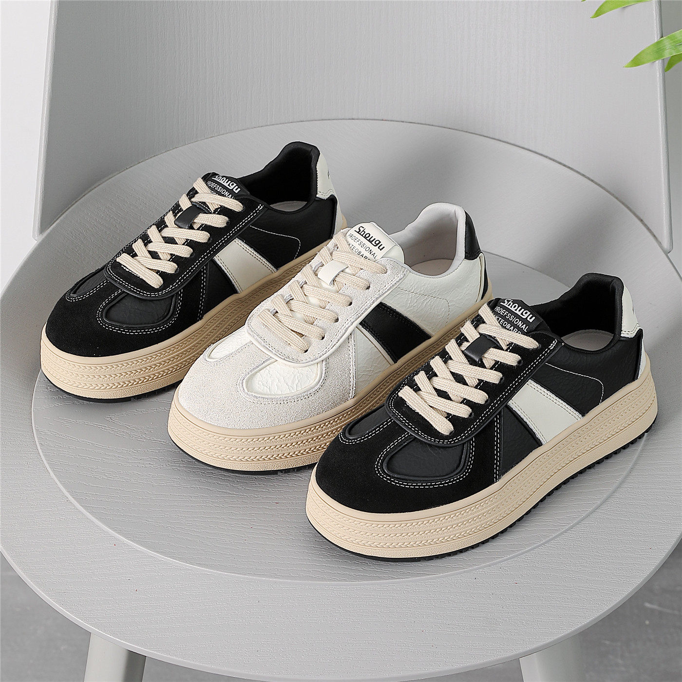 首谷正品真皮厚底板鞋女2025秋新款轻便百搭显脚小运动休闲德训鞋