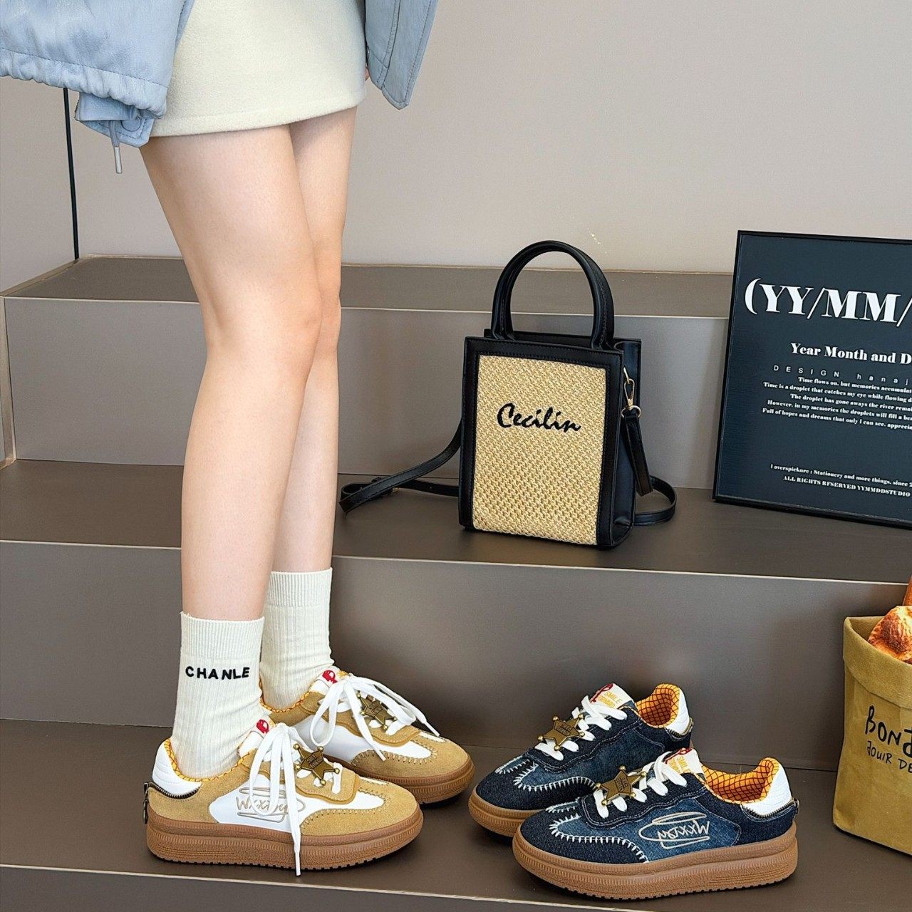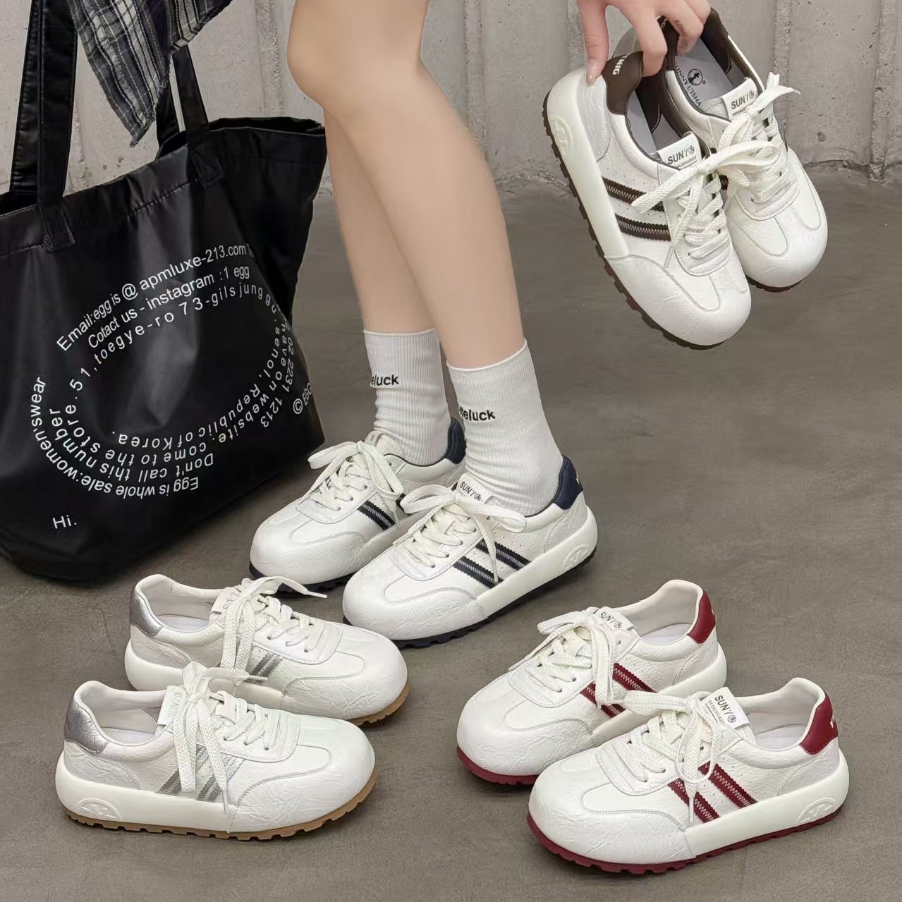 首谷松糕厚底德训鞋女2024秋季新款网红爆款真皮软底休闲运动板鞋