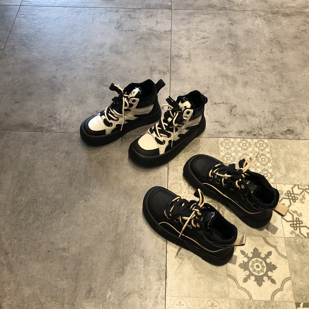 女运动休闲鞋2023春季新款时尚百搭真皮拼接系带厚底鞋板鞋高帮鞋