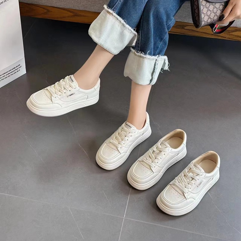 真皮牛皮板鞋女2024秋季新款厚底系带运动休闲鞋复古小白鞋潮