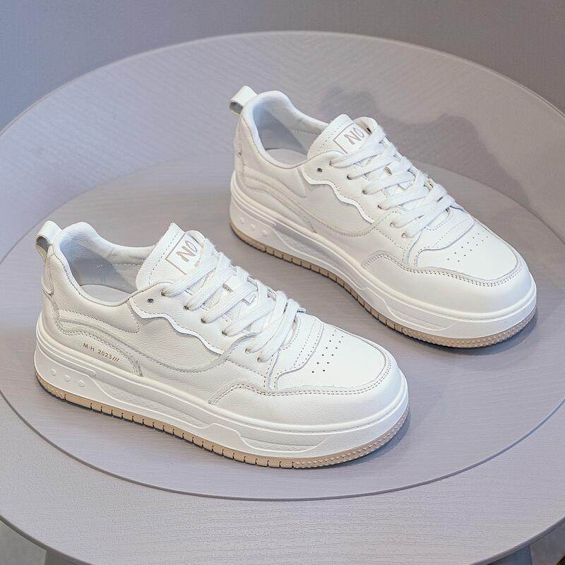 2025新款时尚百搭圆头厚底舒适休闲鞋女鞋真皮小白鞋运动鞋板鞋