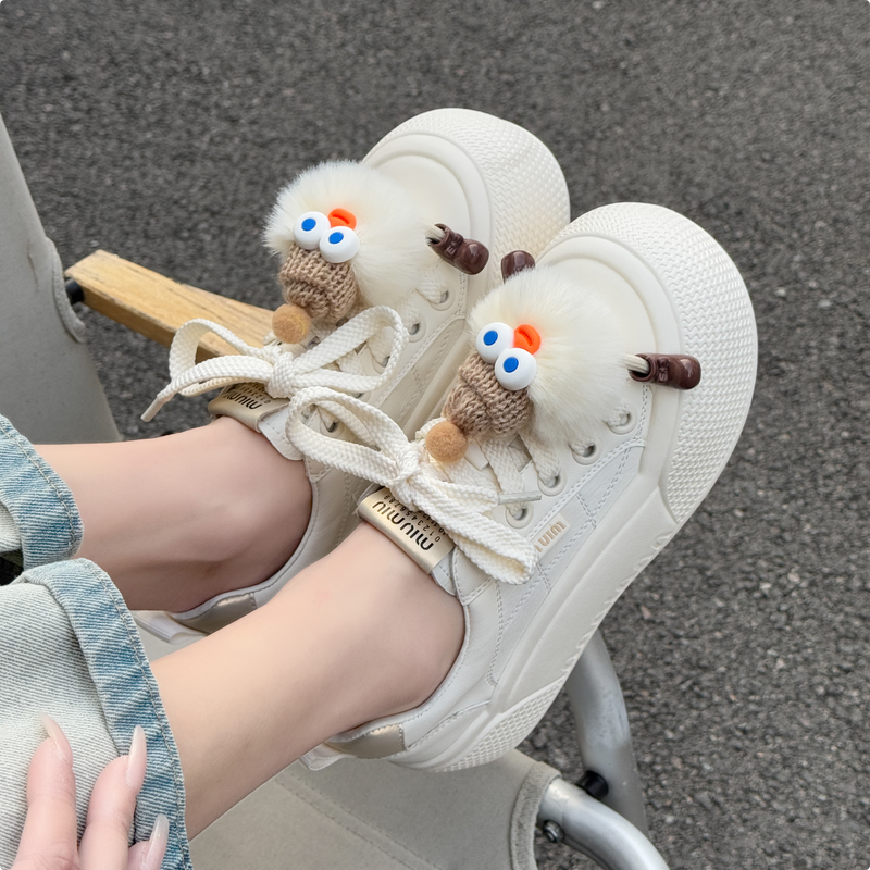 依佳依2025秋冬新款厚底加绒小白鞋女真皮丑萌面包鞋板鞋休闲女鞋