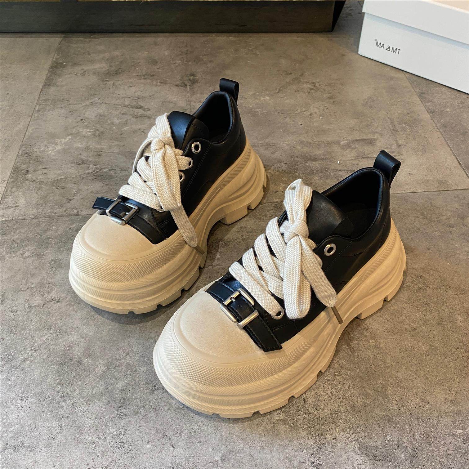 首谷真皮厚底气垫板鞋女2023新款小众风面包鞋百搭爆款运动休闲鞋