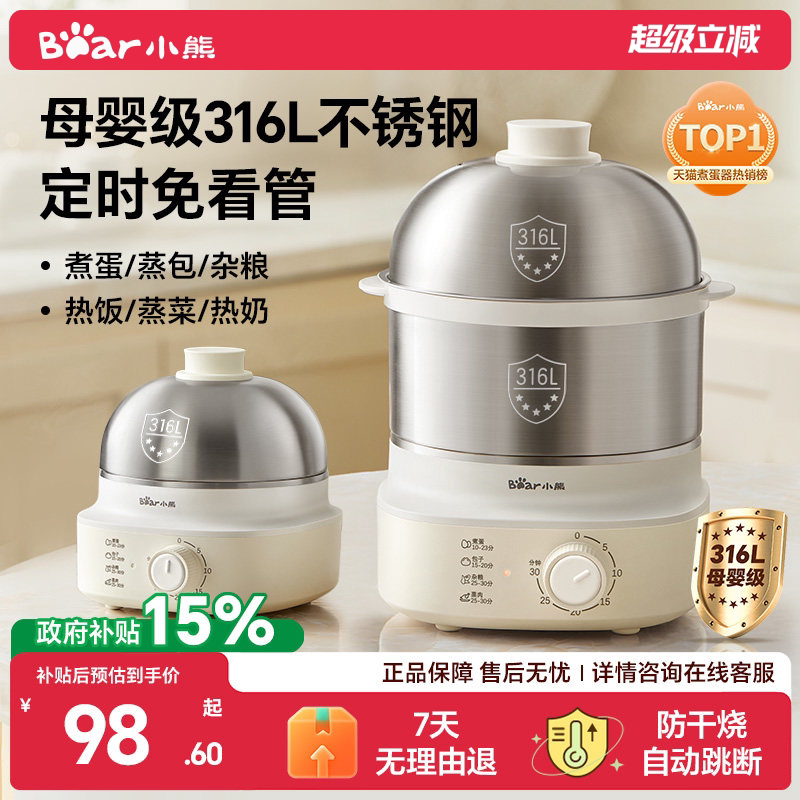 小熊蒸蛋器煮蛋器不锈钢自动断电家用小型蒸锅神器新款早餐机正品
