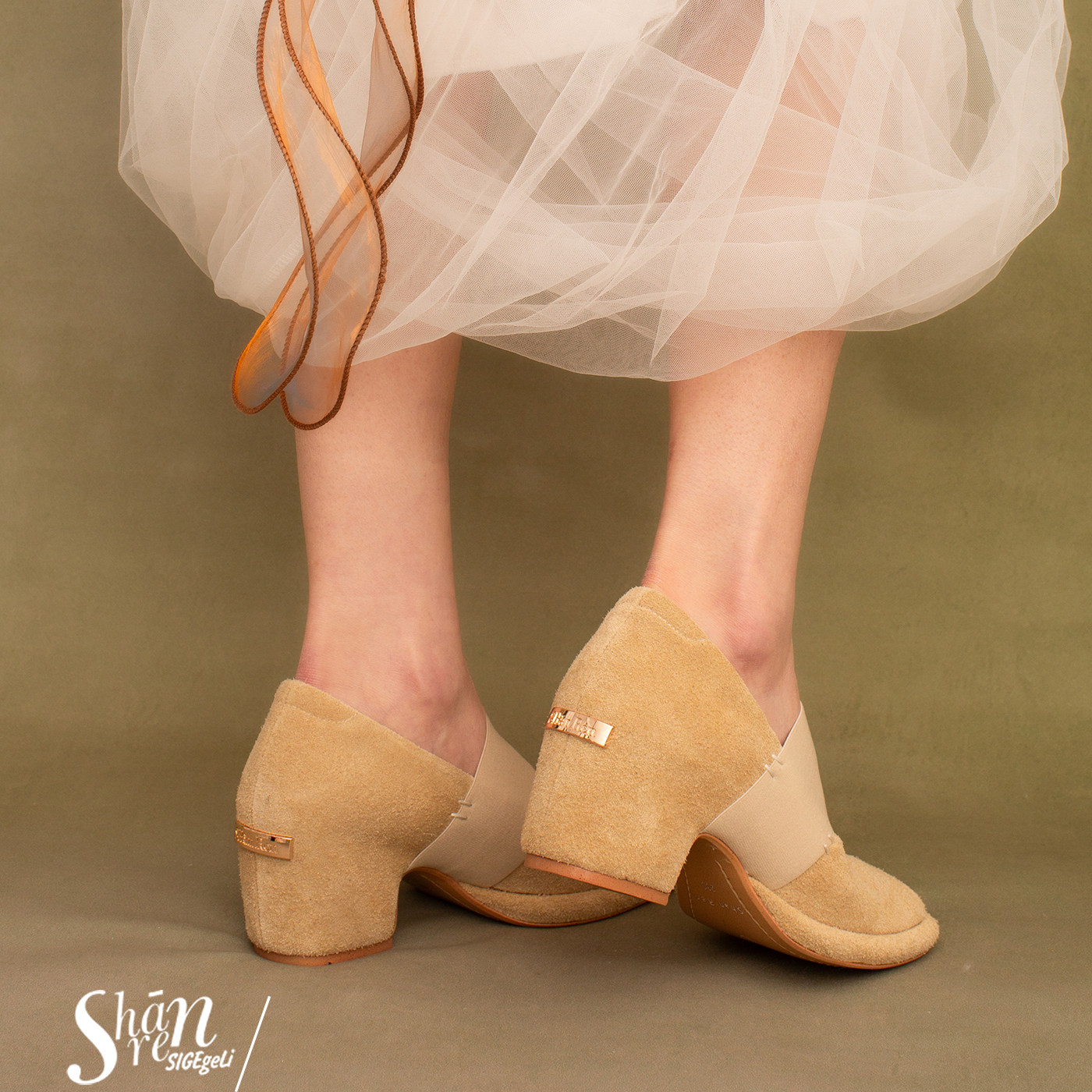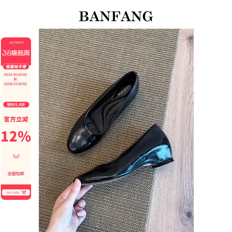 BANFANG女鞋4.5CM内增高圆头裂纹小众一脚蹬圆头中跟浅口单鞋女