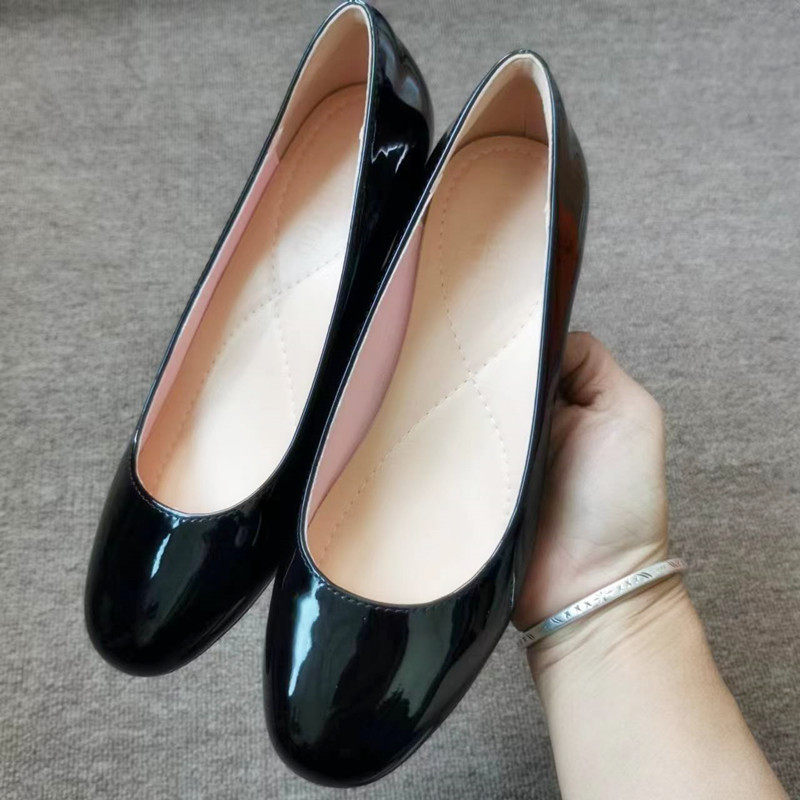 法式蝴蝶结内增高平底鞋女圆头浅口亮面漆皮通勤软面软底中跟单鞋