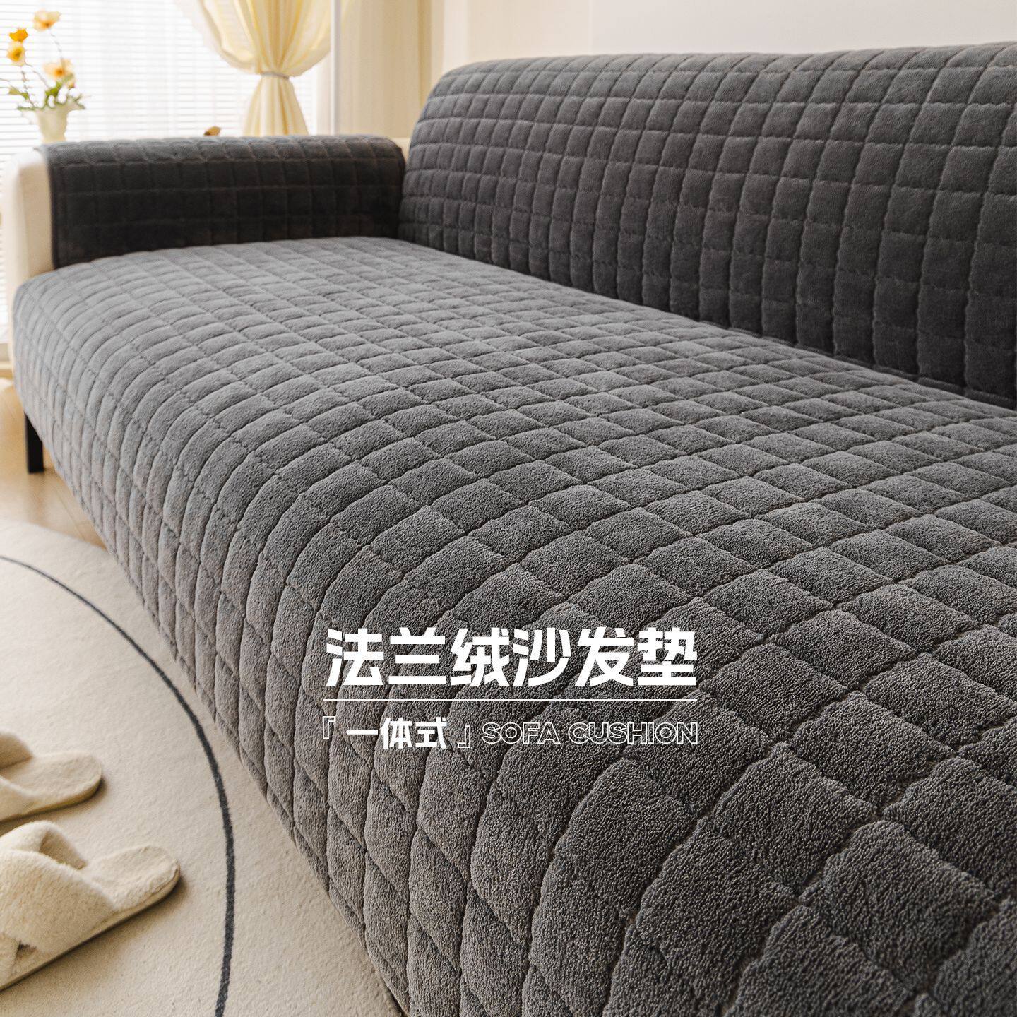 法兰绒沙发垫新款冬季沙发布盖巾简约现代防滑抗皱加厚坐垫子套罩