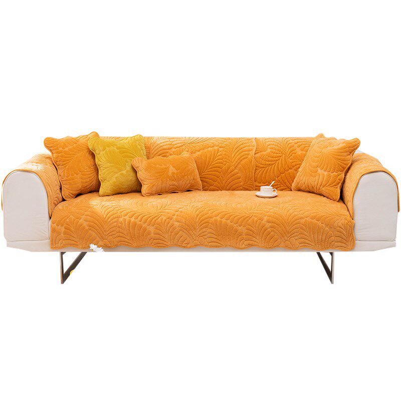 法兰绒冬季加厚毛绒沙发垫子橙色防滑坐垫冬天款沙发套罩橘色盖巾