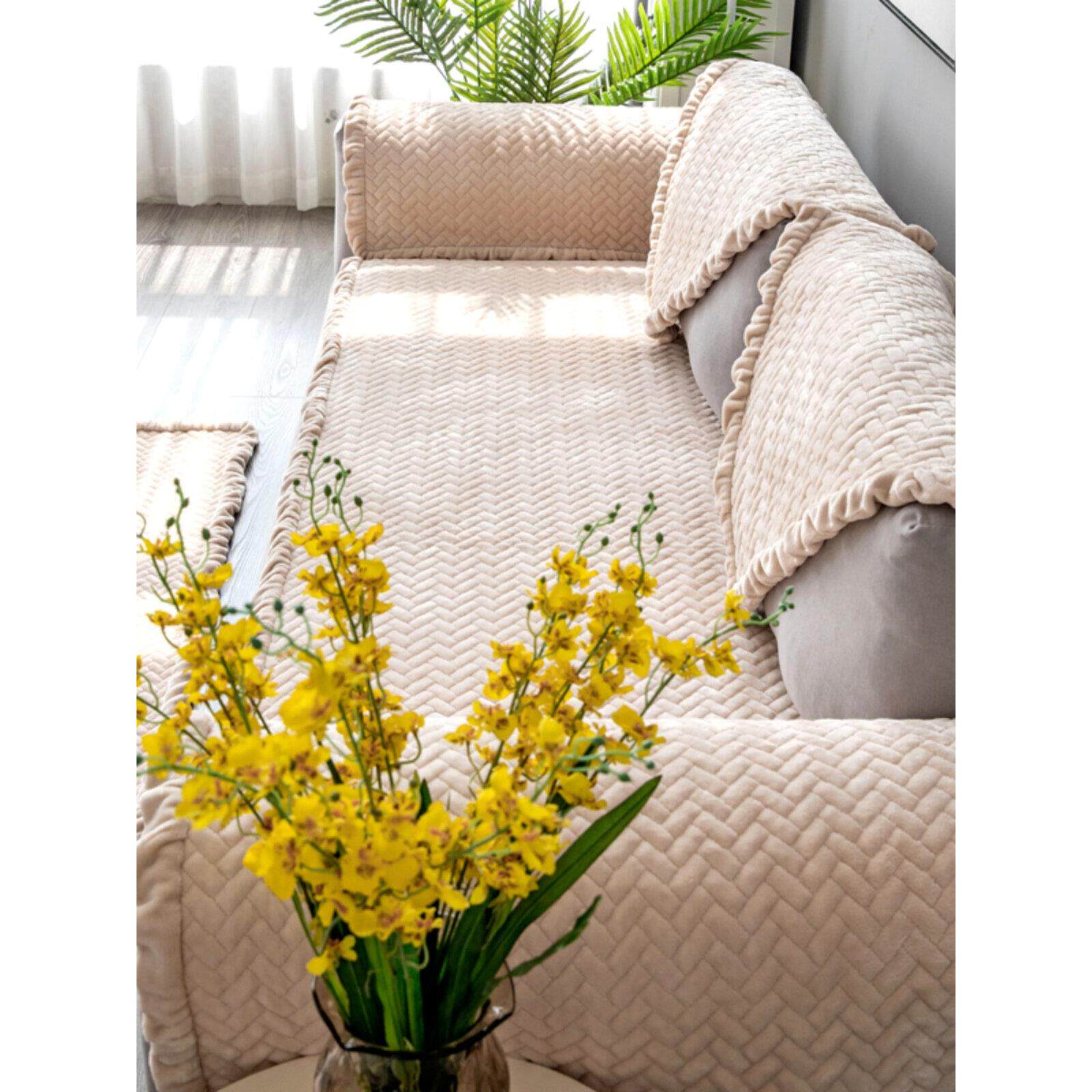 加厚法兰绒沙发盖布巾秋冬奶油风沙发套罩一整张全盖冬季2025新款