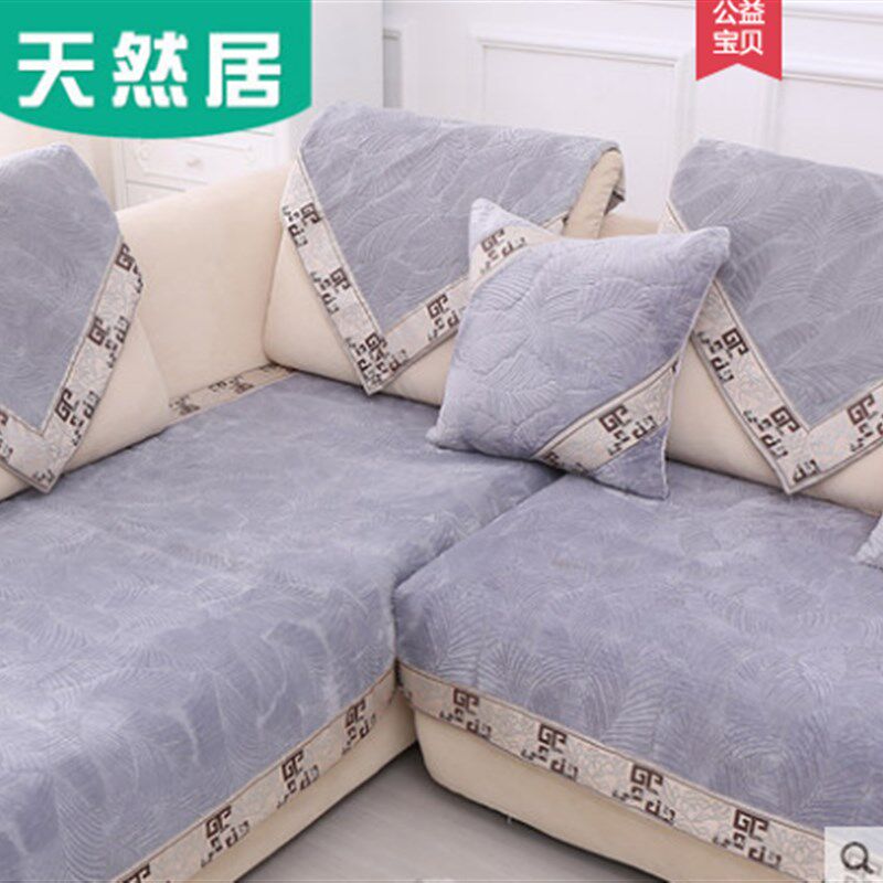 天然居冬季保暖秋冬毛绒沙发垫客厅欧式法兰绒防滑沙发套加厚定制