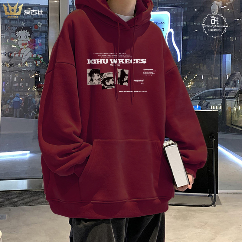 美式高街潮牌动漫纯棉连帽卫衣男春秋冬新款休闲加绒oversize外套