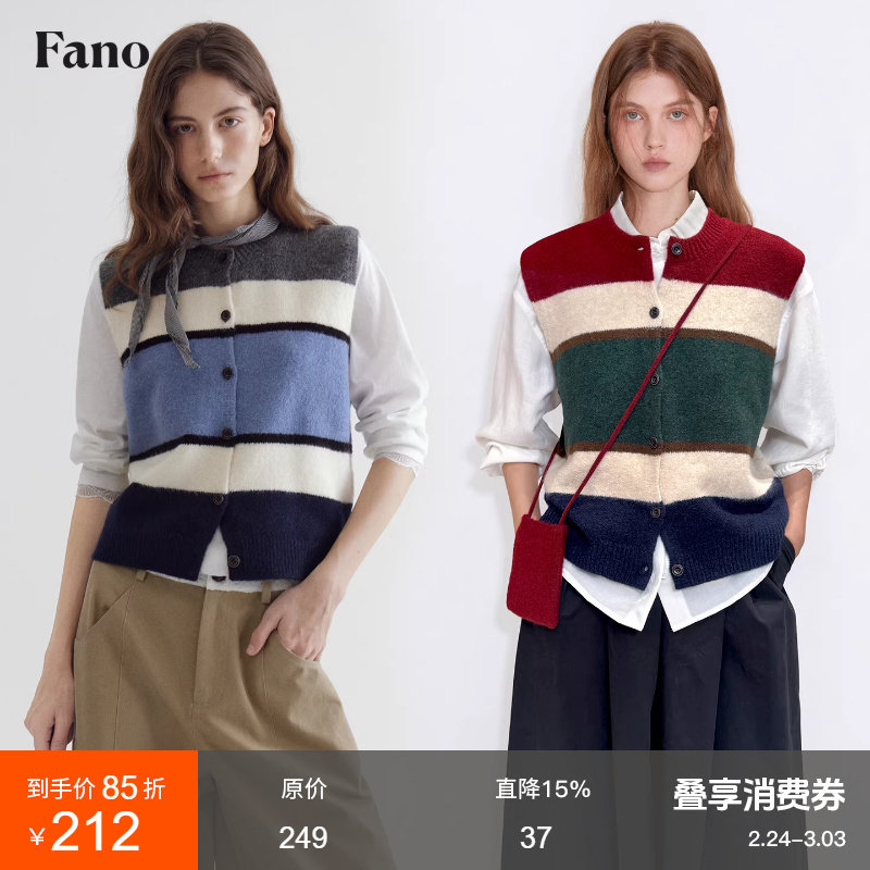 范洛Fano 彩色奏鸣曲不规则彩色条纹绵羊毛混纺针织马甲上衣女冬