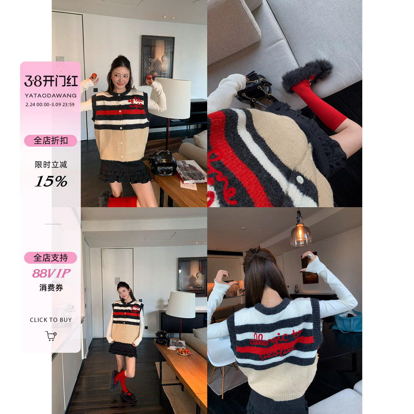 玩味小众设计感秋冬毛衣马甲!撞色条纹针织背心外穿叠穿无袖开衫