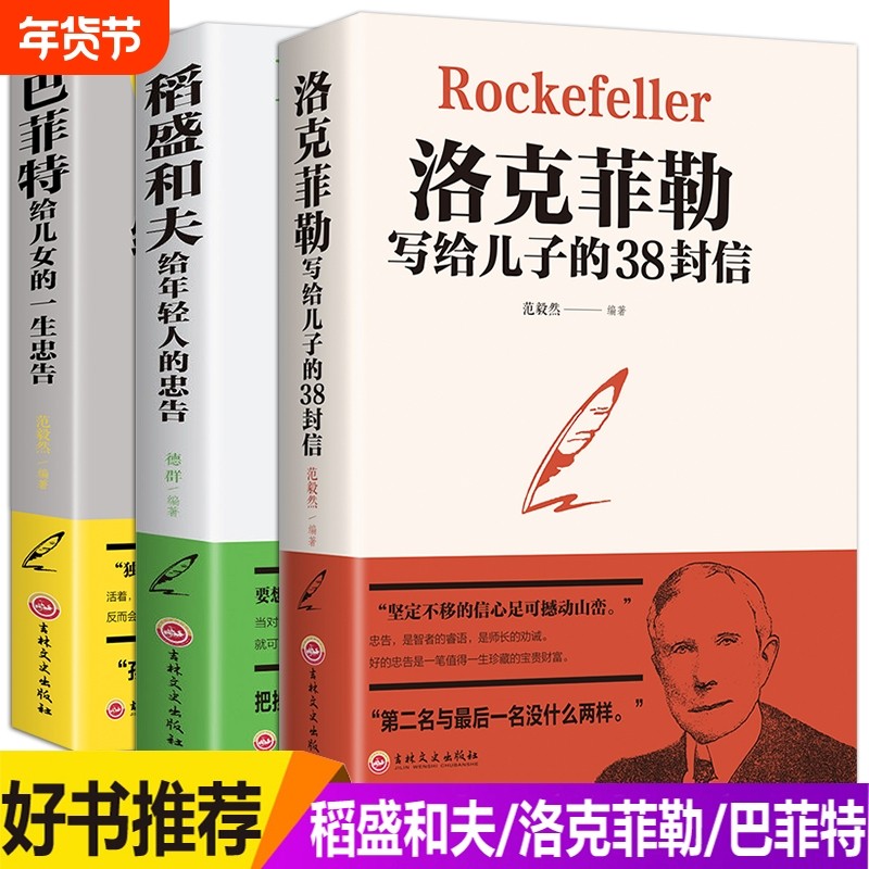 【全3本赠书签】洛克菲勒写给儿子的38封信+巴菲特给儿女的一生忠告+稻盛和夫给年轻人的忠告 人生哲理强者成功法则励志正版书籍