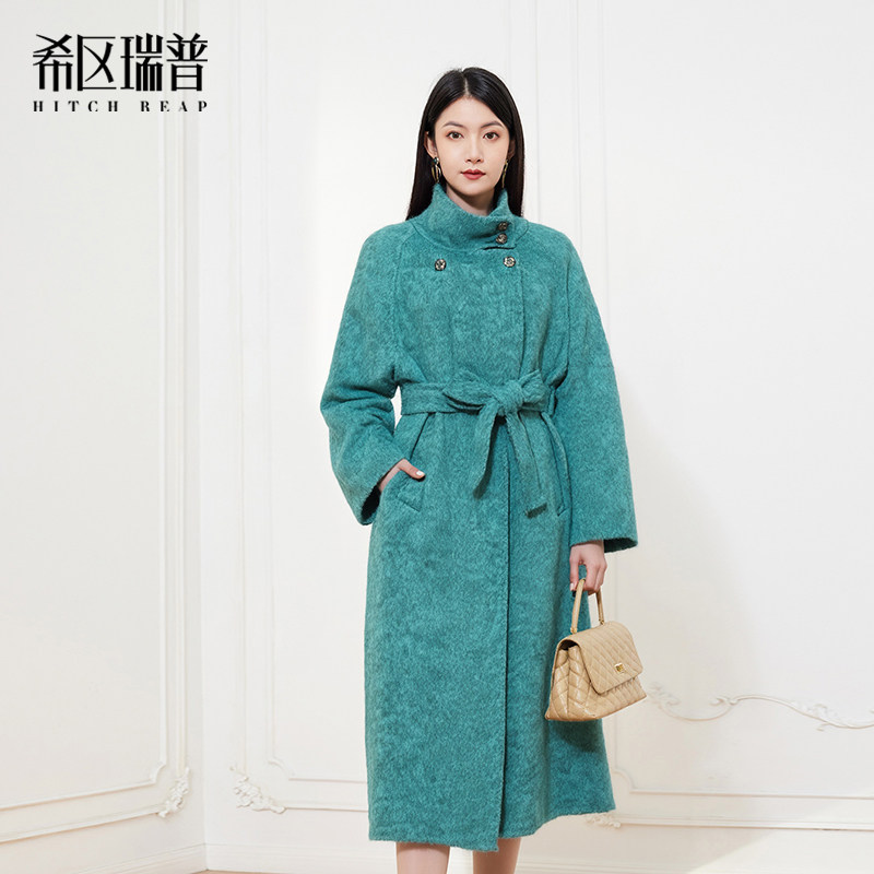 2025希区瑞普秋冬新品老钱风立领羊毛呢大衣女长款收腰系带高级感