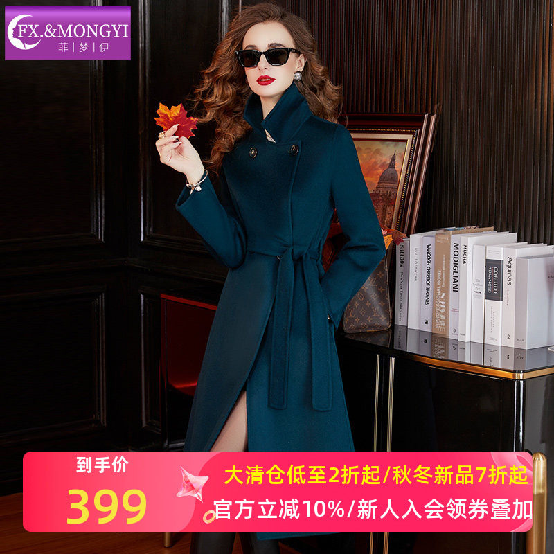 菲梦伊100羊毛大衣女冬季高级感系带收腰加厚大码中长款毛呢外套