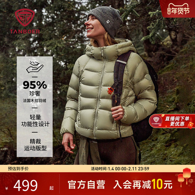 【95%鸭绒】坦博尔2025冬季新款轻户外羽绒女士短款连帽保暖外套