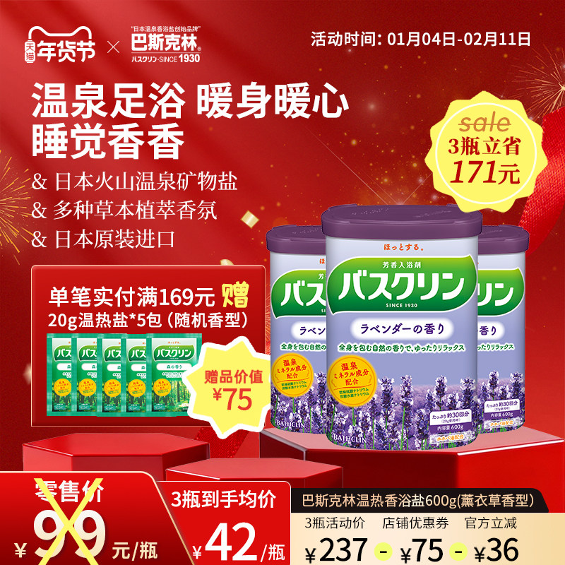 巴斯克林薰衣草香浴盐600g日本进口足浴盐泡脚粉家用泡澡泡浴盐
