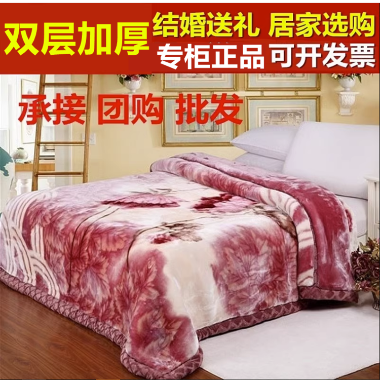 正品双层加厚拉舍尔毛毯秋冬季保暖绒毯单双人婚庆毯子珊瑚绒盖毯
