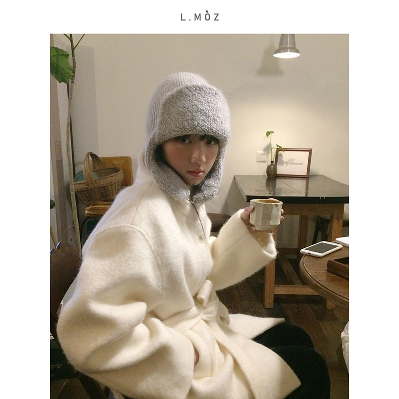 蓝墨竹定制针织帽子女秋冬季新款加厚保暖兔毛护耳帽显脸小雷锋帽