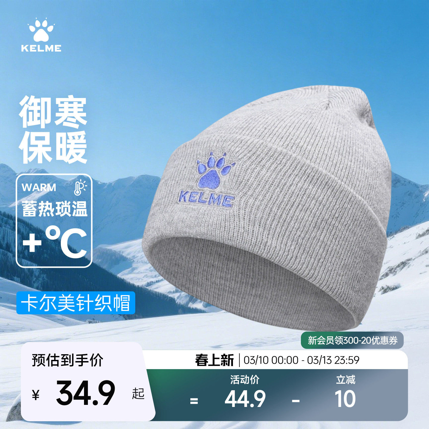 卡尔美帽子男士冬季防风防寒针织帽女户外运动跑步骑行加厚保暖帽