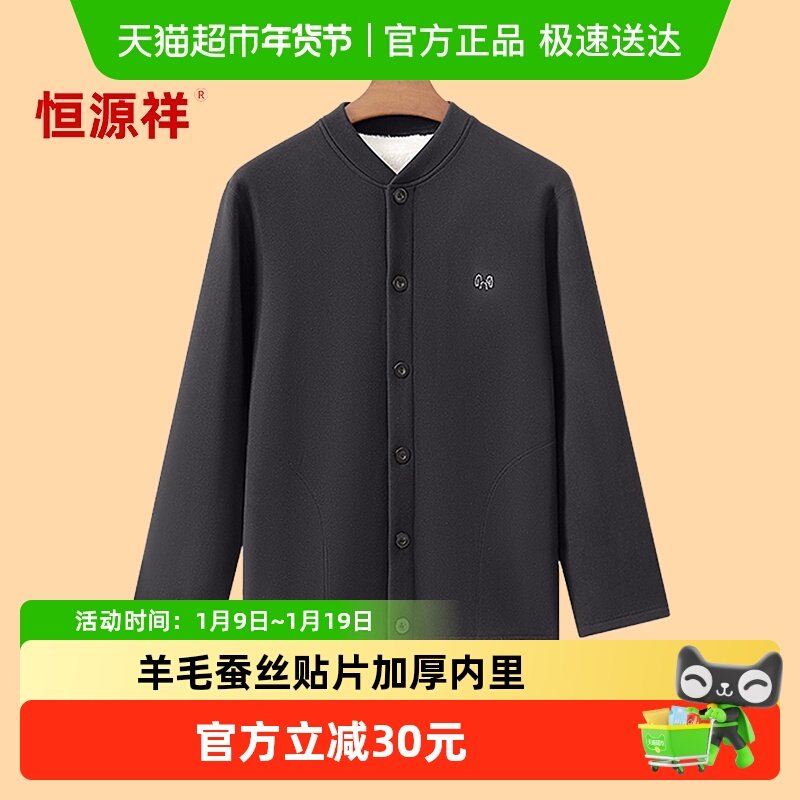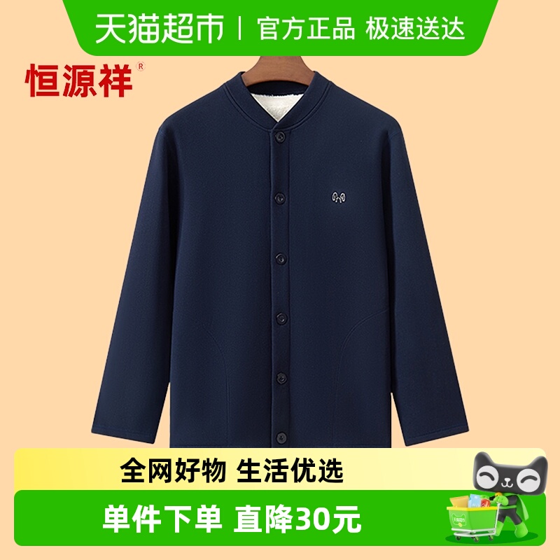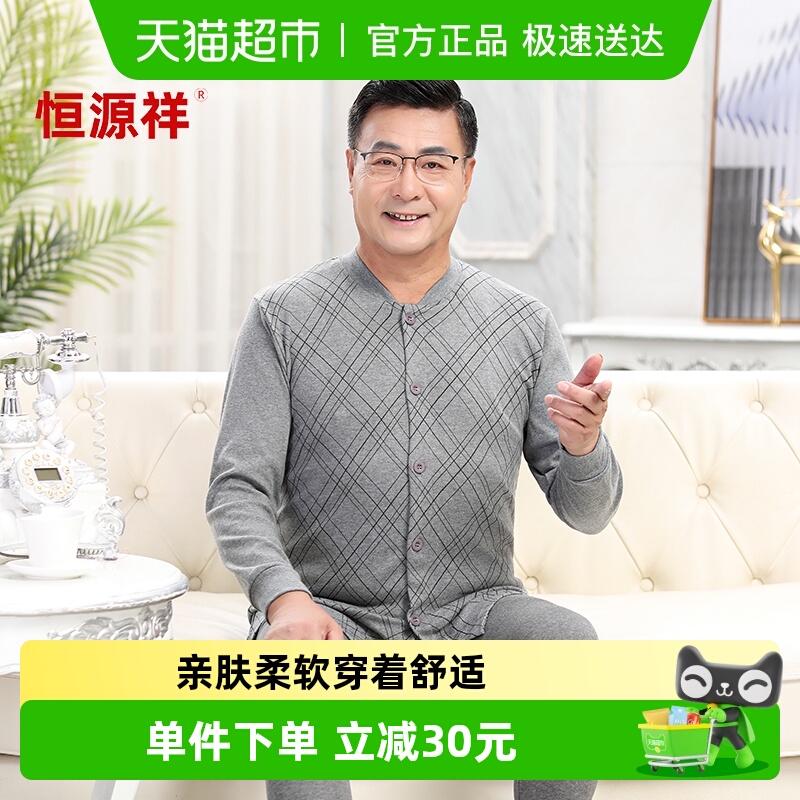 恒源祥开衫款男士秋衣秋裤套装纯棉对襟系扣保暖衣中老年老人内衣