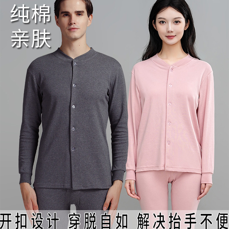 春织老人秋衣秋裤女纯棉开衫套装中老年保暖内衣全棉加厚秋冬季男