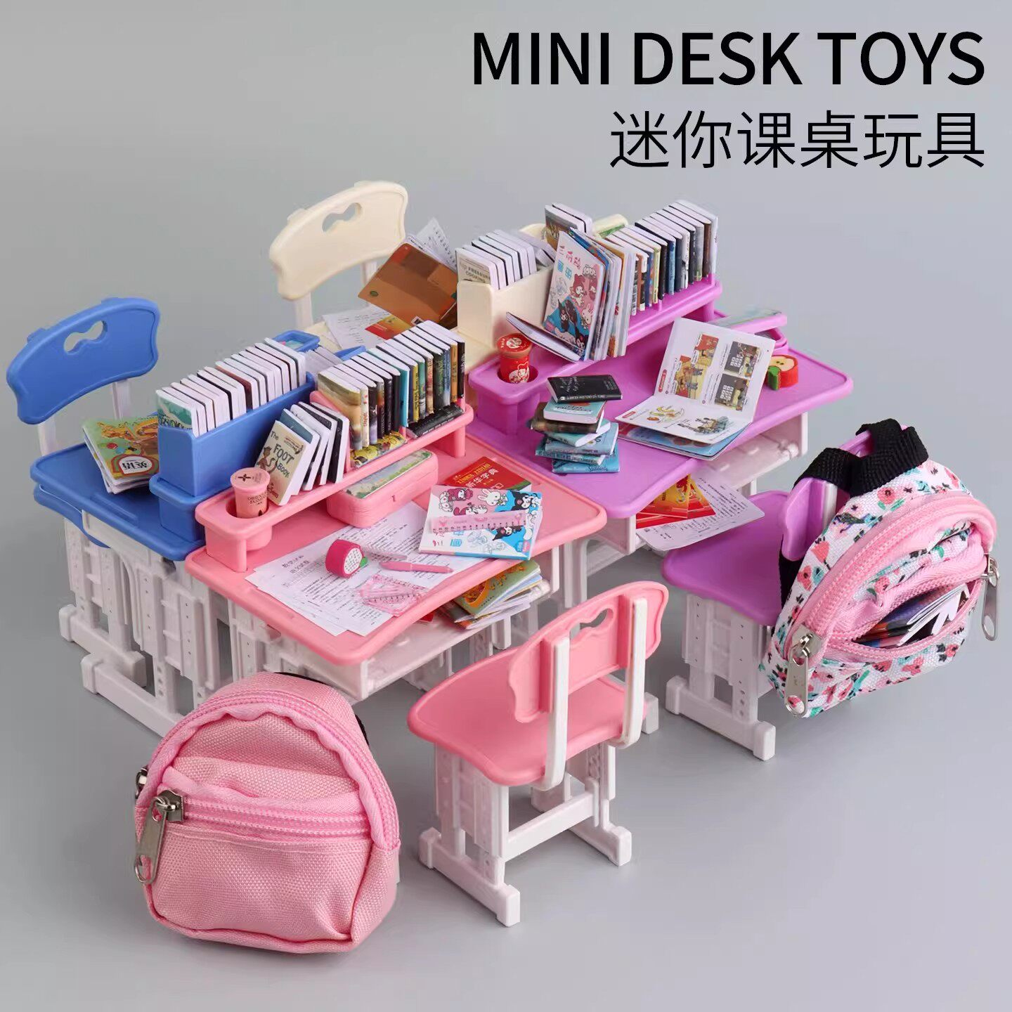迷你学习课桌椅微缩仿真文具套装铅笔盒小书包课本书本模型小玩具
