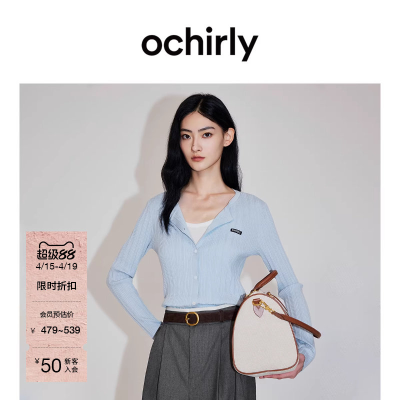 【新品】OCHIRLY欧时力 针织外套2026春羊毛坑条修身气质防晒开衫