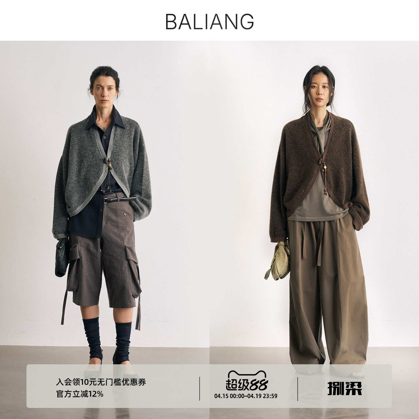 BALIANG捌梁〔茧晤〕廓形羊毛厚针织开衫蝙蝠袖百搭通勤上衣外套