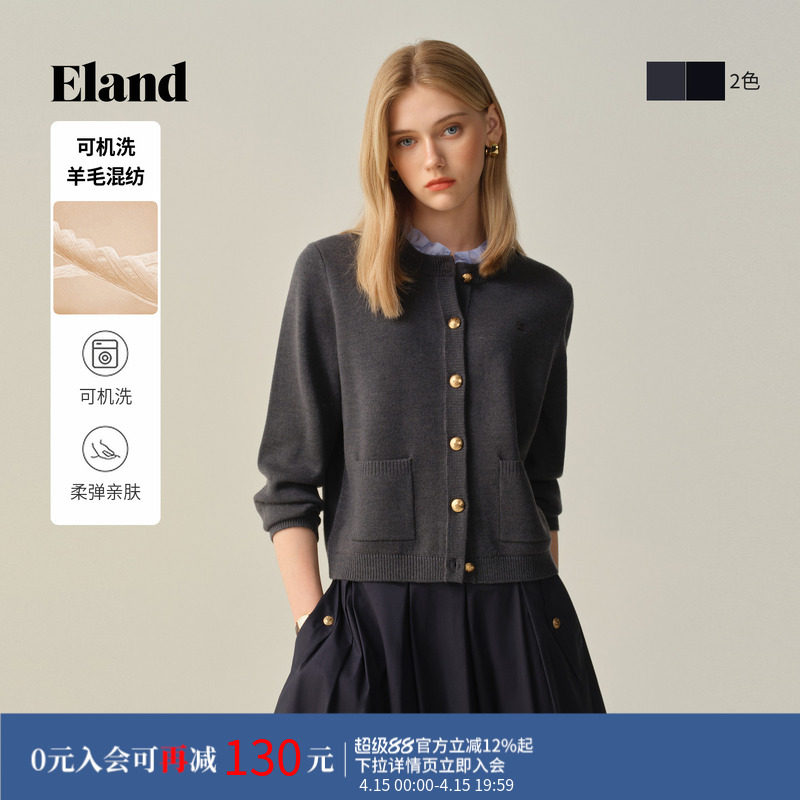 【可机洗羊毛】Eland衣恋毛针织衫女开衫单排扣外套冬季新款