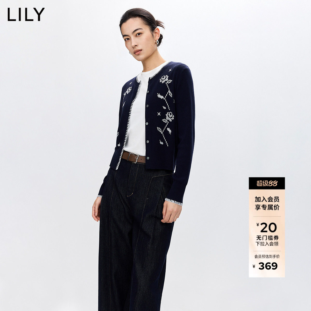 - 刺绣针织开衫 女
